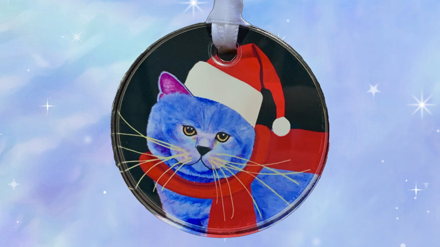 Colorful Christmas Ornaments from Claudia's Cats Collection will make a delightful addition to your tree this holiday season. Or, hang them in your home for wonderful year-round decorations. Choose from Porcelain or new Clear Acrylic. All ornaments measure 3” across.