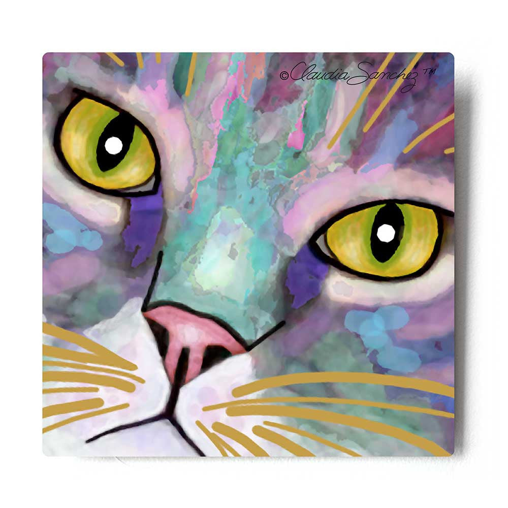 Aluminum Art Print features Napper Eyes, cat art by Claudia Sanchez, available in 8x8 or 10x10 size.