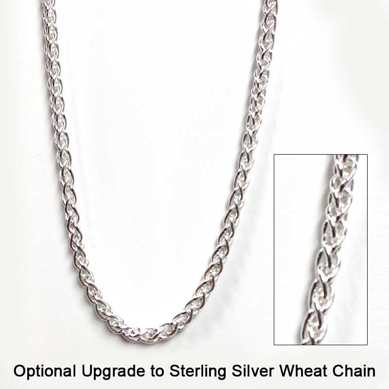 Scuba Cat, art by Claudia Sanchez, is featured on this exquisite Mother of Pearl shell pendant necklace. Dye is infused into the shell surface, creating a rich, iridescent effect. Each shell piece is slightly different, making each pendant an individual wearable piece of art. Pendant measures 1.75 round and comes with a black rubber cord (3mm), 18 long with a sterling silver lobster clasp. You may upgrade to a Sterling Silver Wheat Chain (2.5mm), 18 long with sterling silver lobster clasp for an additional fee.
